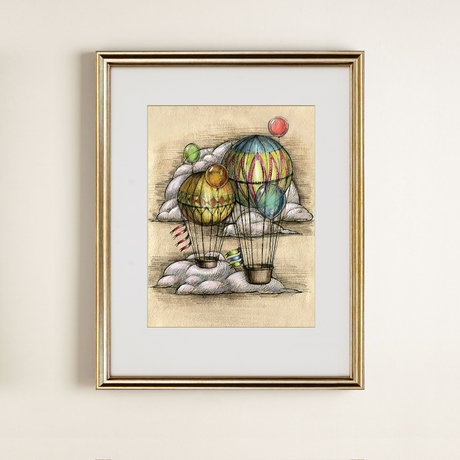 Очаровательный декор для стен детской – постеры с изображением воздушных шаров в стиле ретро. Работы созданы на основе авторской графики. Теплый цвет бумаги, тонко прорисованные детали, золотая изящная рамка - удачное сочетание сюжета и материалов, невероятно уютное решение для комнаты вашего ребенка. Товар изготовляется в Москве под заказ, сроки изготовления от 3 до 14 дней.