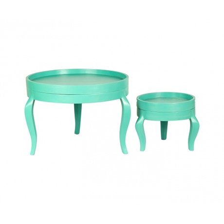 Набор из двух кофейных столиков круглой формы, выкрашенных в мятный цвет. Выполнены из натурального дерева. Это прекрасное дополнение в интерьер в прованском стиле.