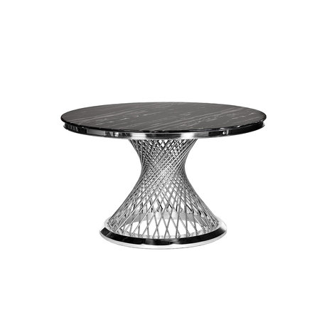Ищете центральный элемент столовой, который станет и функциональным предметом, и арт-объектом? Круглый стол Nero с диаметром **120 см** и высотой **75 см** решает эту задачу. Сочетание черной мраморной столешницы и серебристого металлического основания создает баланс между роскошью и современной эстетикой.