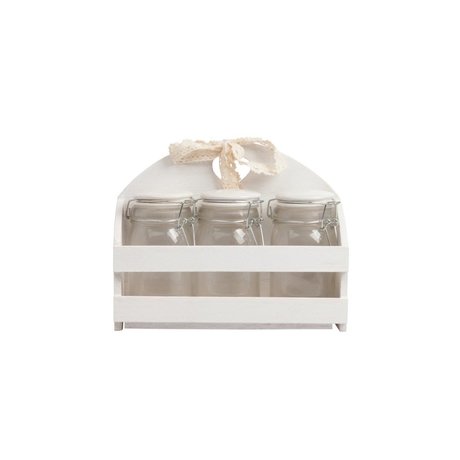 Набор из трёх декоративных банок, выполненных из стекла, с надежными крышками, идеально подойдет для хранения сыпучих продуктов и гармонично впишется в интерьер кухни в стиле Прованс.