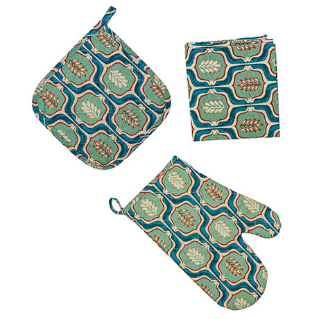 Набор для кухни 3 предмета 'Радушная хозяйка (Традиция)' (рукавичка-прихватка, прихватка, полотенце), 100% хлопок, 'Листья'