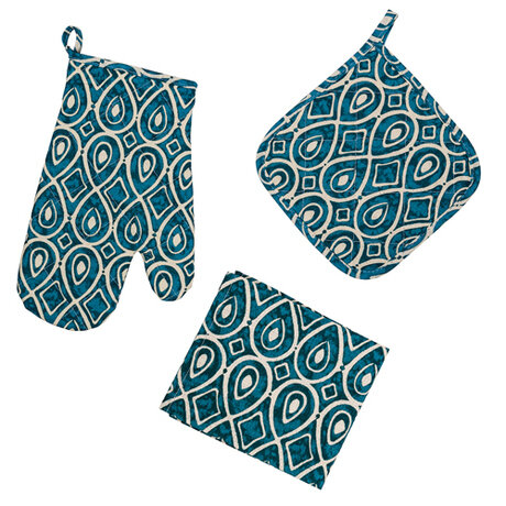 Набор для кухни 3 предмета 'Радушная хозяйка (Традиция)' (рукавичка-прихватка, прихватка, полотенце), 100% хлопок, 'Орнамент синий'