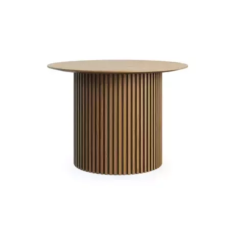 Ищете компактный журнальный столик, который станет функциональным украшением интерьера? Стол Mono Stripe диаметром 60 см сочетает минималистичную форму с выразительной фактурой вертикальных реек. Идеальный баланс между практичностью и дизайном для современных интерьеров. Три главных преимущества: - Натуральные материалы — шпонированная поверхность сохраняет тепло и уникальный рисунок дерева - Компактные размеры — подходит для помещений от 14 м² и идеален для небольших пространств - Рельефное основание — вертикальные рейки создают игру света и тени, добавляя интерьеру глубину Стол Mono подойдет для квартир в скандинавском, минималистичном или эко-стиле. Его круглая форма без острых углов делает его безопасным в семьях с детьми. Диаметр 60 см оптимален для расстановки напитков, журналов и декора, не загромождая пространство. Технические характеристики: - Материал — МДФ с покрытием из натурального шпона, защищенного матовым лаком - Вес 16 кг — обеспечивает устойчивость без излишней массивности - Форма — круглая столешница на цилиндрическом основании с фактурными рейками - Цвет — натуральный коричневый с естественным древесным узором - Уход — достаточно протирать мягкой сухой или слегка влажной тканью Стол требует минимальной сборки и комплектуется фетровыми подпятниками, которые защитят ваш пол от царапин. Органично дополнит диванную зону в гостиной или станет прикроватным столиком в спальне.Отзывы