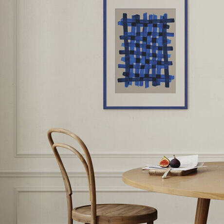 Минималистское произведение искусства, созданное из сетки мазков кисти. С белым паспарту в синей деревянной раме с акриловым стеклом.