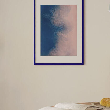 Glaze Stores — это серия плакатов, сделанных из изображений глазури Кэролайн крупным планом на ее керамических изделиях. Детали настолько богаты, что вы почувствуете, что перенеслись в другую вселенную, когда она висит у вас на стене. С белым паспарту в синей деревянной раме с акриловым стеклом.