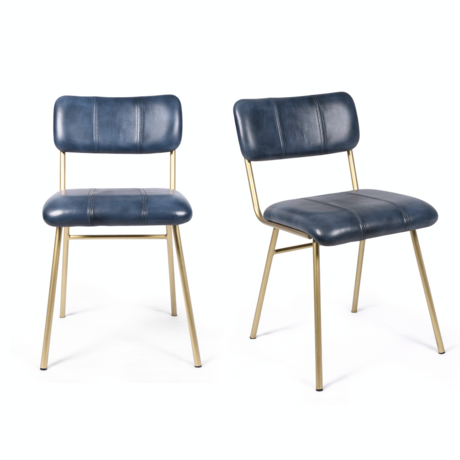 Стулья Анупама в синей коже: сочетание золота и натуральной кожи буйвола