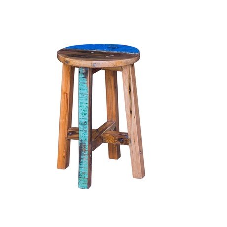Табурет выполнен из массива древесины старого рыбацкого судна, такой как: тик, махогон, суар, с сохранением оригинальной многослойной окраски. Сборка не требуется.