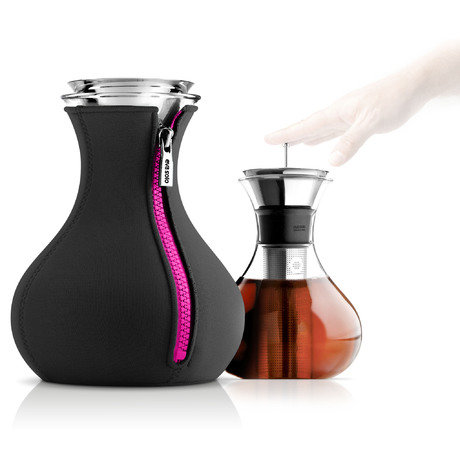Вам нравится заваривать чай с чаинками? Просто положите щепотку любимого чая в колбу. А вот если захотите очистить напиток от всего лишнего, то просто используйте встроенный фильтр и наслаждайтесь напитком без трав. Колба чайника выполнена из закаленного стекла, а пробка из нержавеющей стали и каучука. Неопреновый чехол долго не даст напитку остыть. Можно мыть в посудомоечной машине. Чайник Eva Solo Tea maker удостоен премии Red Dot Award в 2005 году
